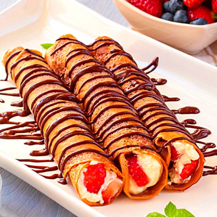 3 rolls de crepa con 1 base cada una, 2 toppings normales y 1 toping liquido