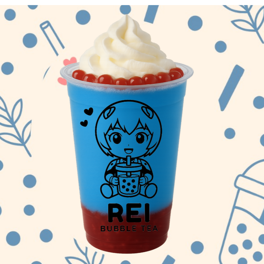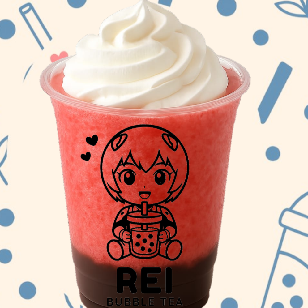 Frappe de 16 oz a base de leche sabor mora azul, perlas de tapioca, mermelada de fresa y crema batida.