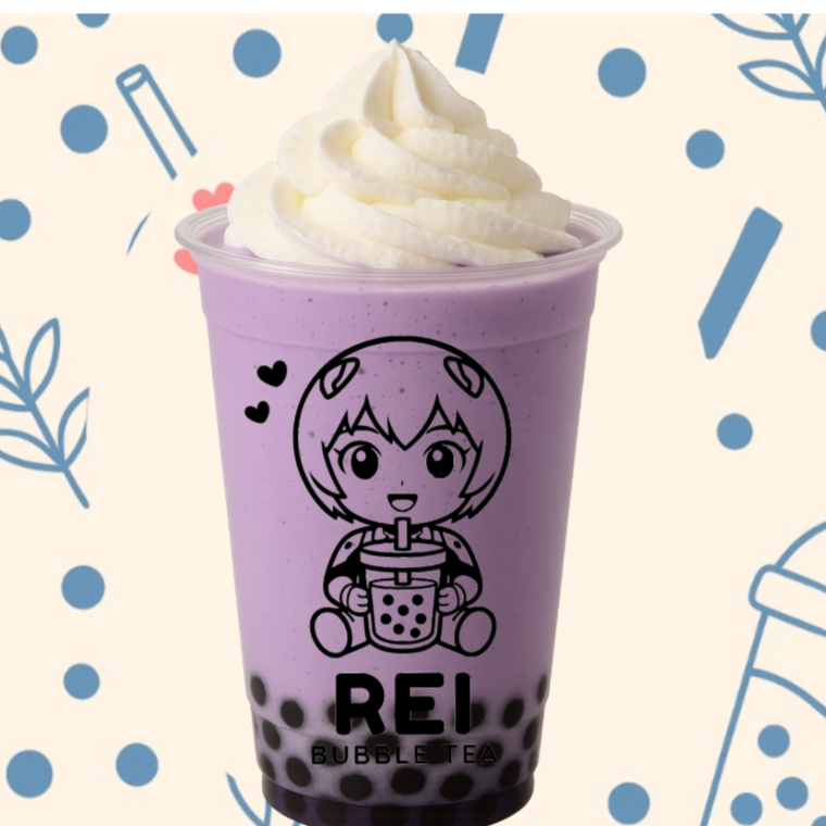 Frappe de 16 oz sabor Taro, a base de leche, perlas de tapioca y crema batida.