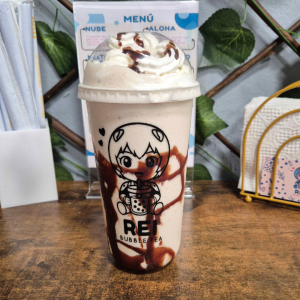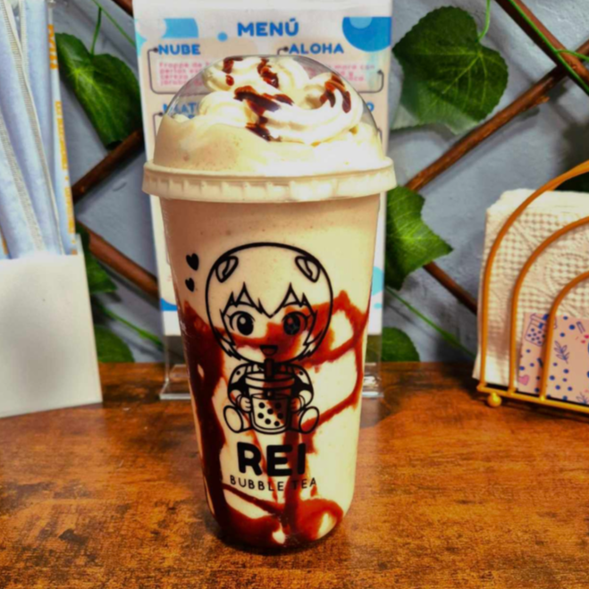 Frappe de 16oz a base de leche sabor Chai, vainilla, jarabe de chocolate y crema batida.