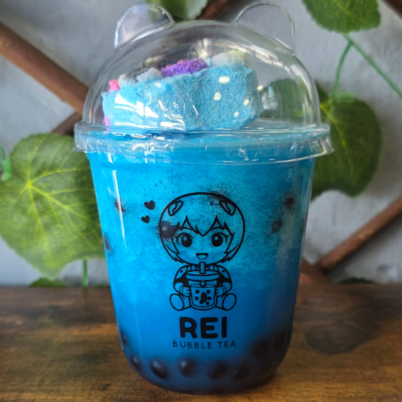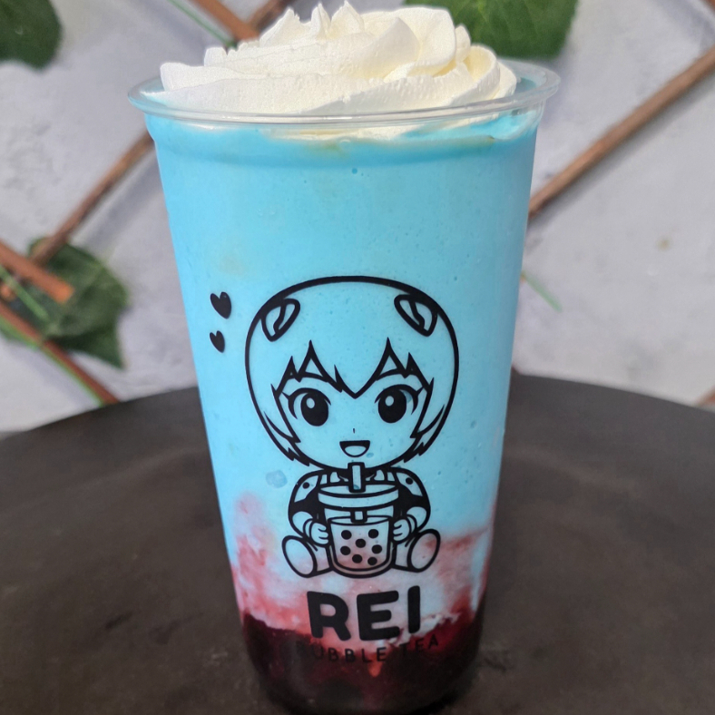 Smothie de 12oz a base de agua, super especial sabor mora azul con perlas de mora azul y un stich comestible al cambiar el tamaño de mediano o grande