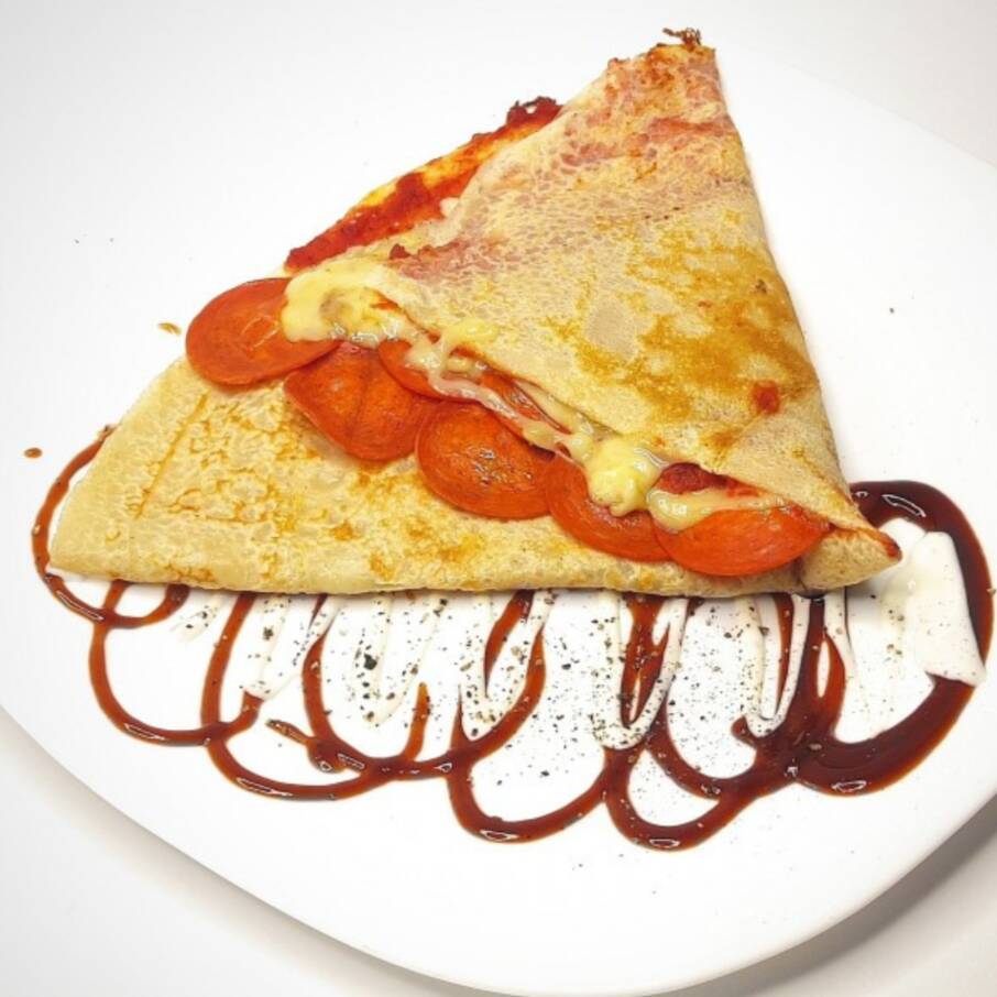 Crepa con 1 base de queso, 1 o 2 ingredientes salados y 1 aderezo