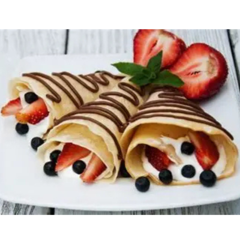 Crepa con 1 o 2 bases, 1 topping normal y 1 topping liquido