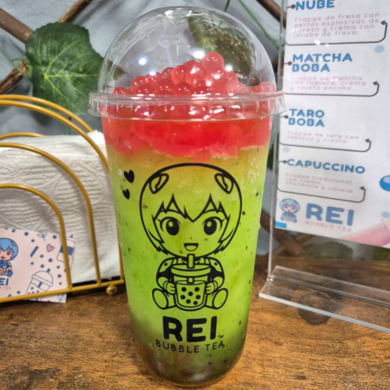 Frappe de 16oz a base de leche sabor frutas tropicales con perlas explosivas de fresa, jarabe de kiwi y crema batida.