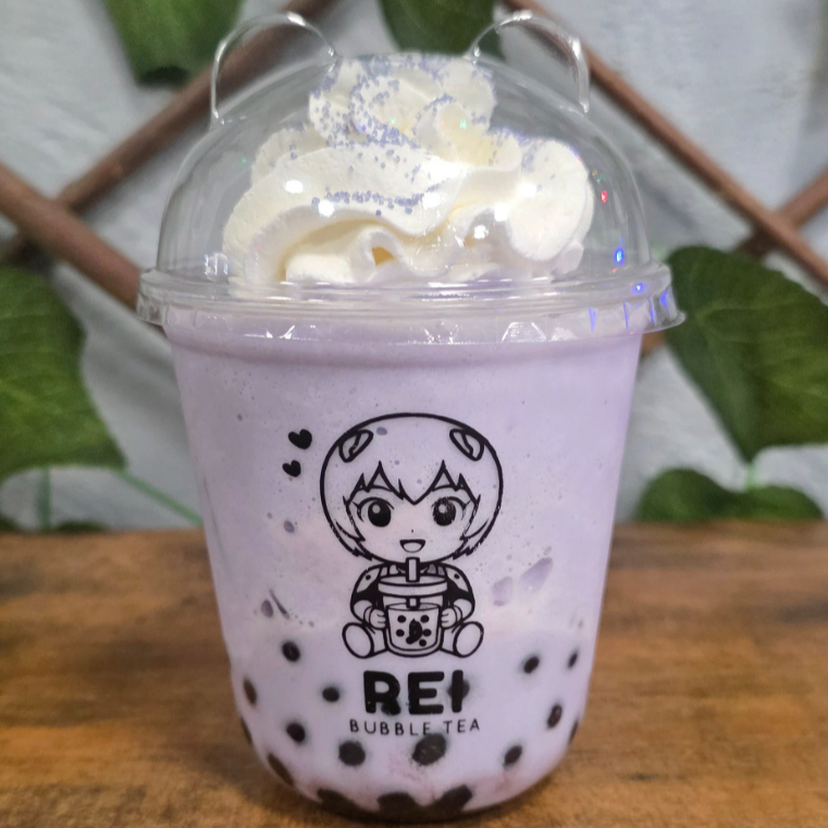 Bebida de 12 oz tipo frappe de sabor Taro Gourmet a base de leche, perlas de tapioca y crema batida vegetal