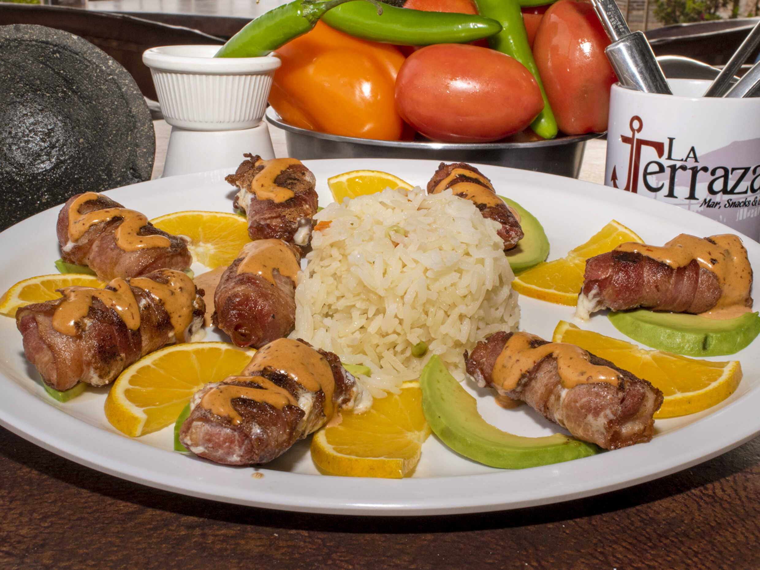 Delicioso burrito de mariscos de camarón, camarón y pulpo, marlin o pulpo. Agrega papas si así lo deseas.