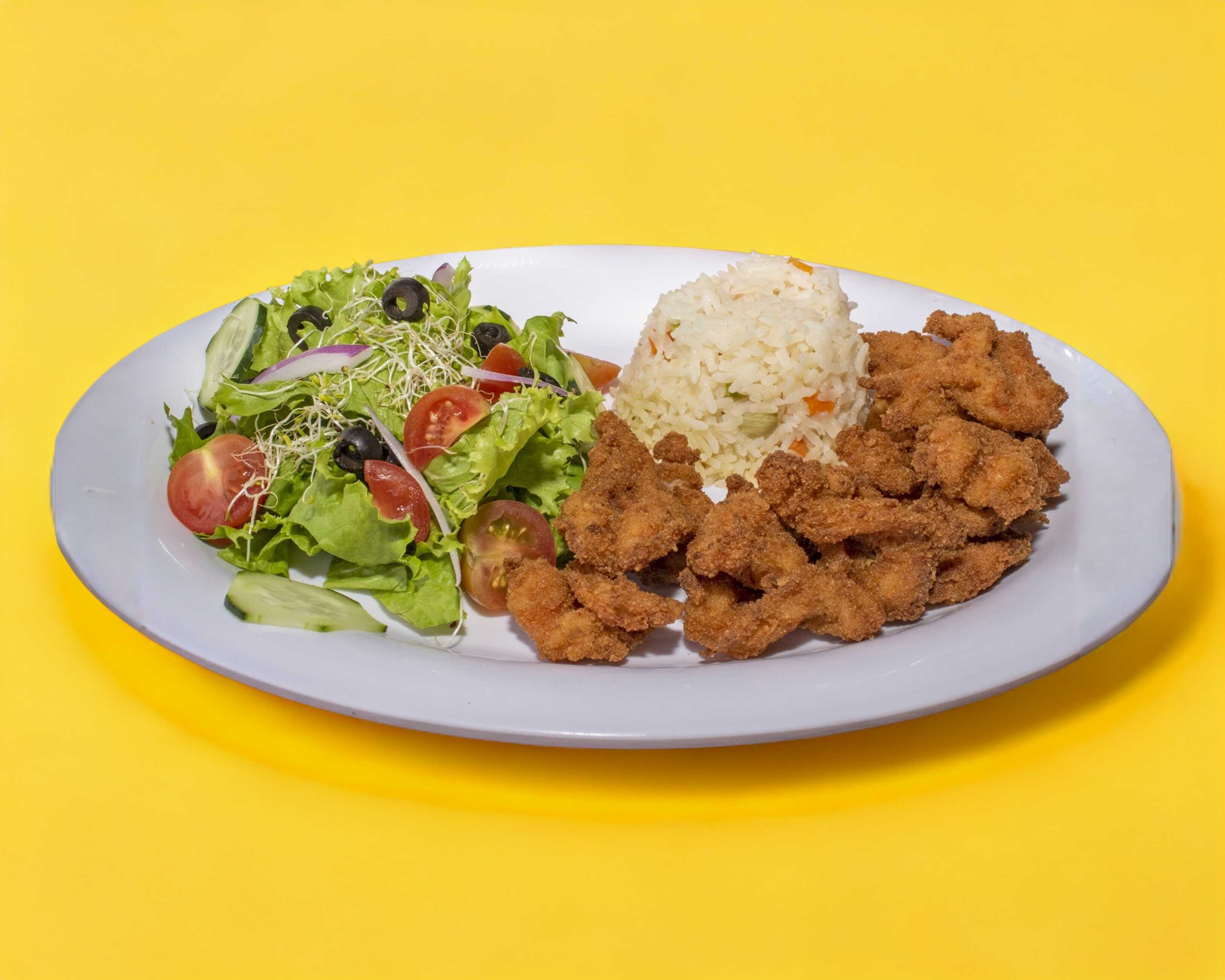 Delicios platillo con 10 pz de nuggets, acompañado de papas prancesa y ensalada aderezada con honey mustard.