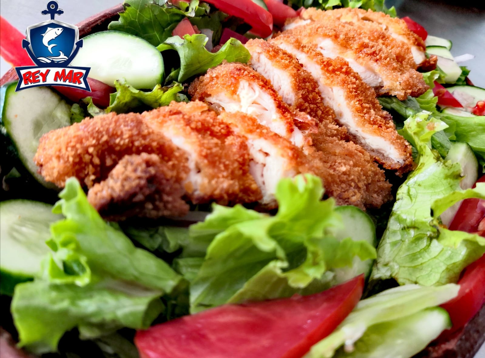 1200 Gr de pescado empanizado acompañado de lechuga italiana, jitomate, cebolla y pepino.