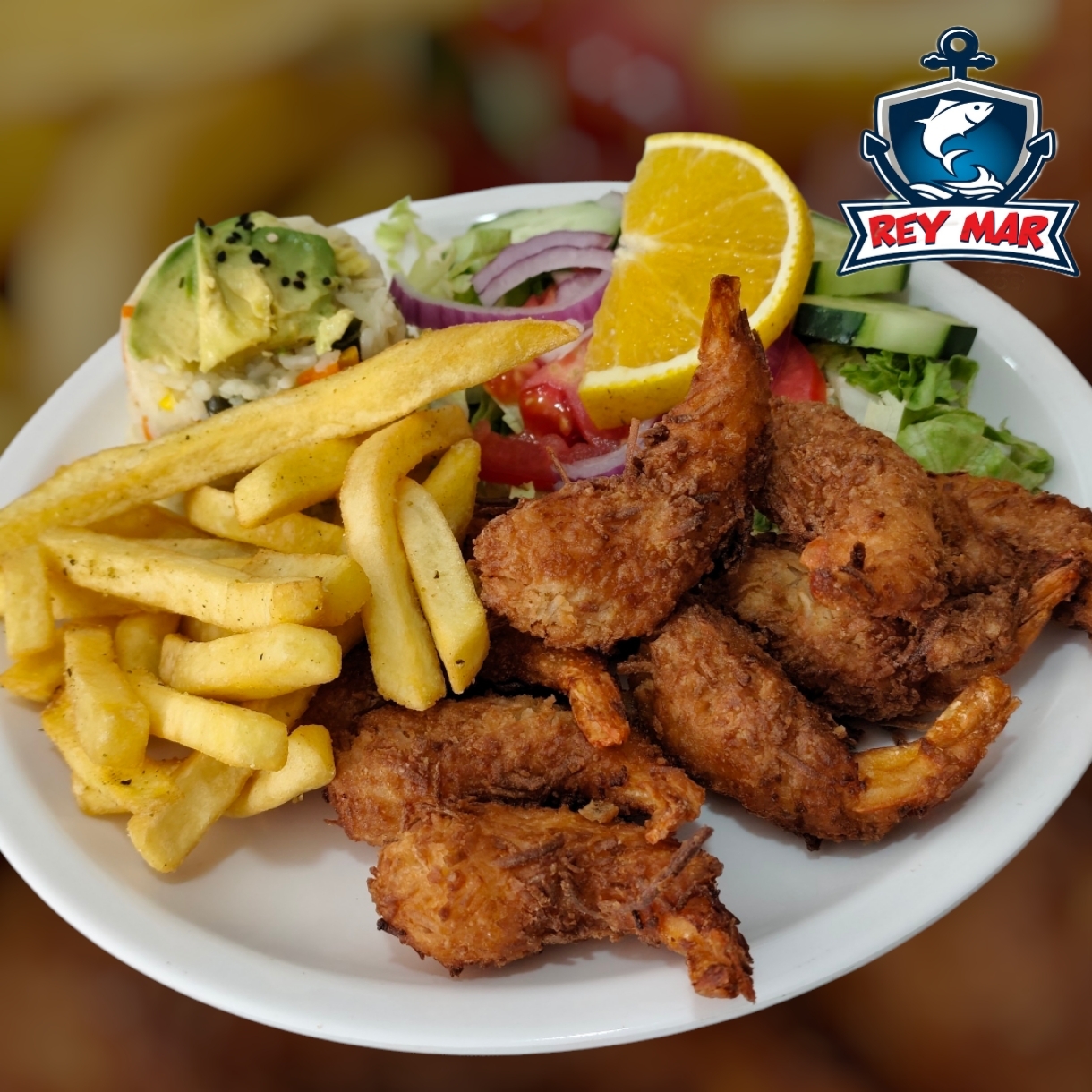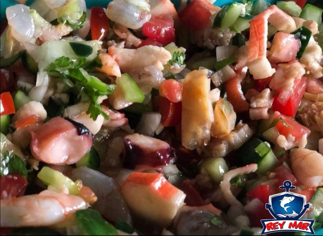 Mix de camarones, pescado, surimi y pulpo acompañados de salsas estilo Rey Mar.