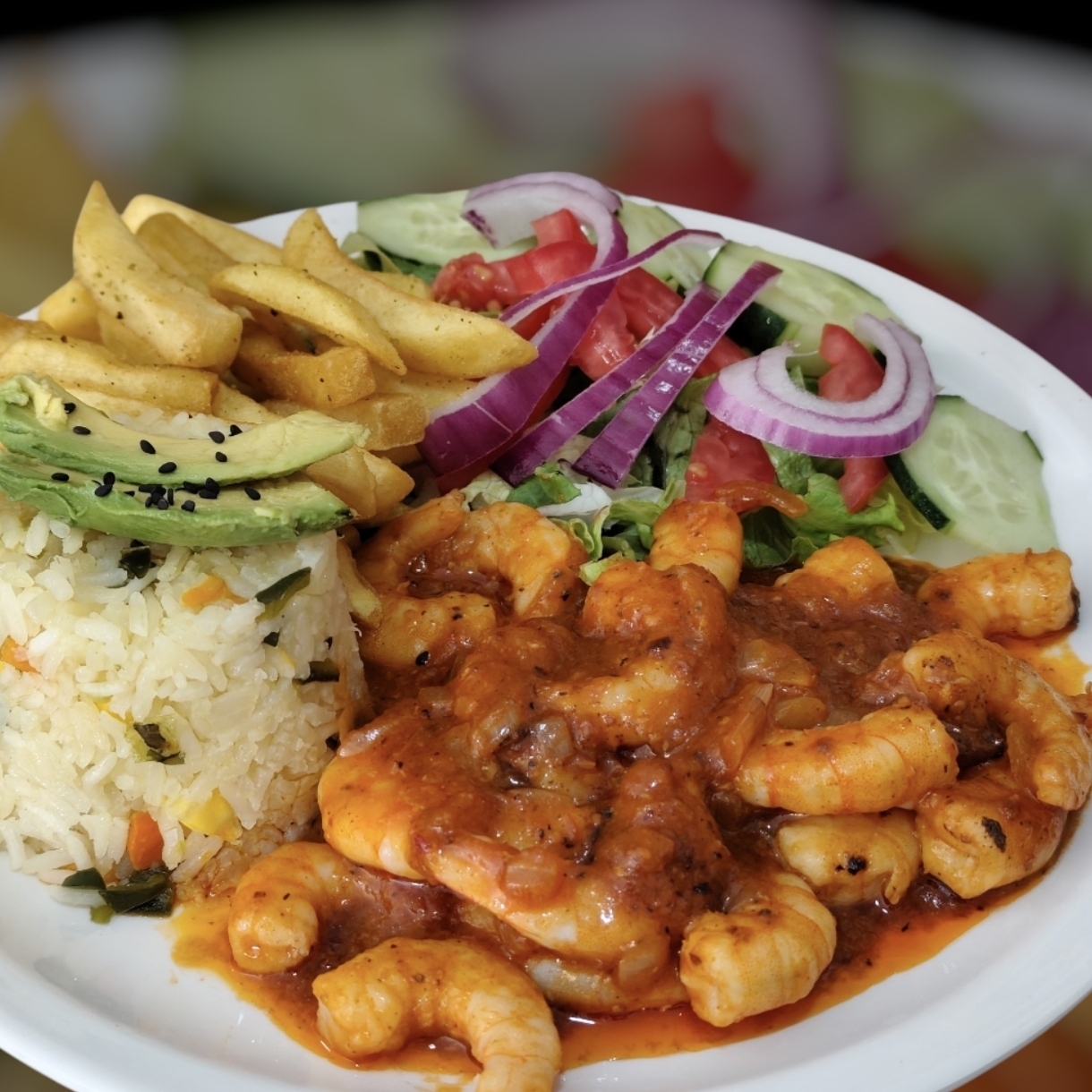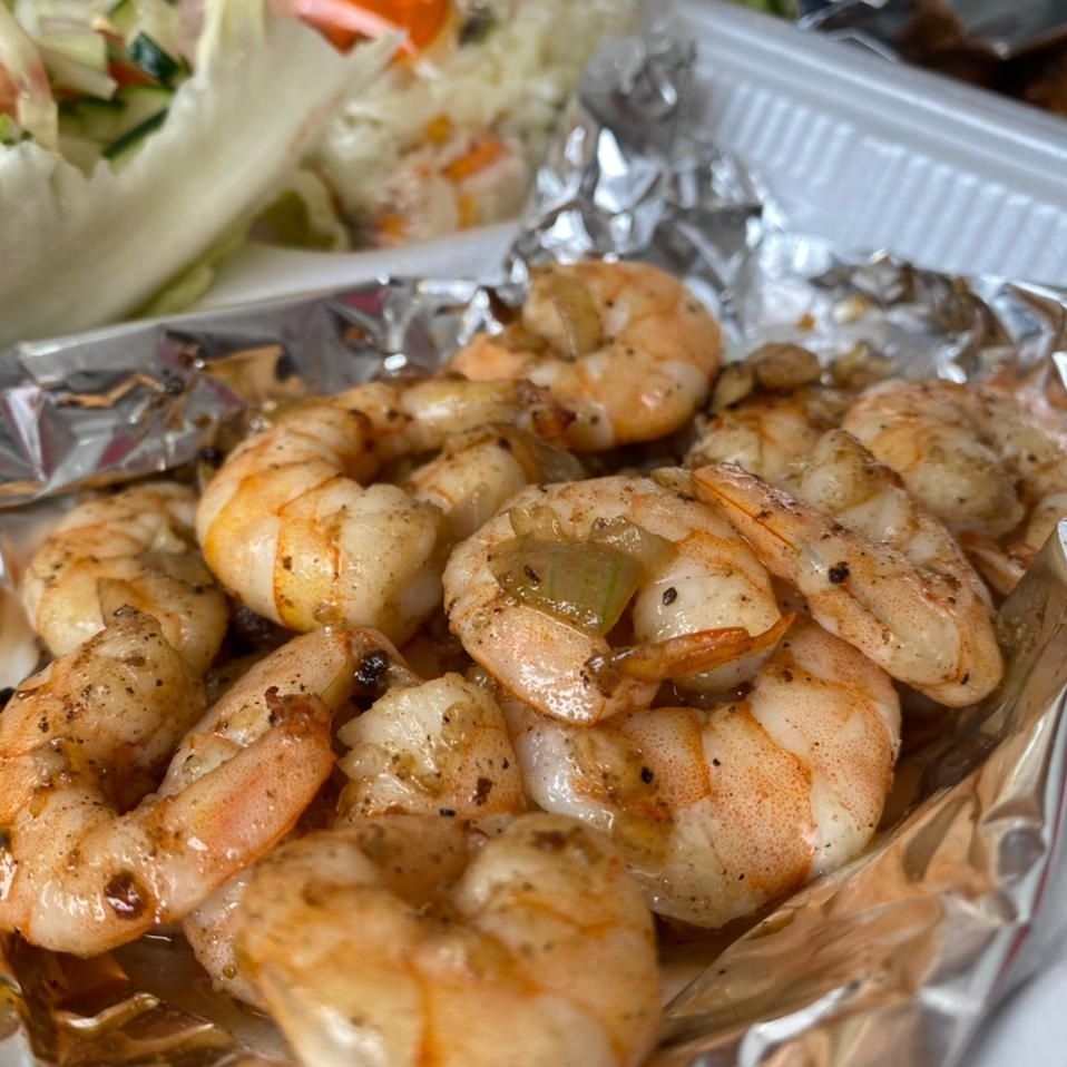 Acompañada de papas a la francesa ricos camarones a la plancha lechuga italiana.