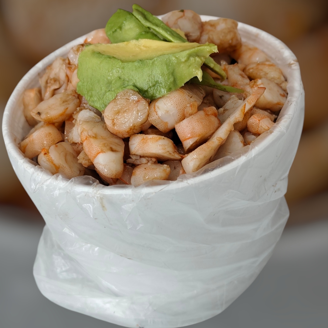 1/2 Lt Ceviche de Camarón Cocido*1 + Cóctel Grande*1