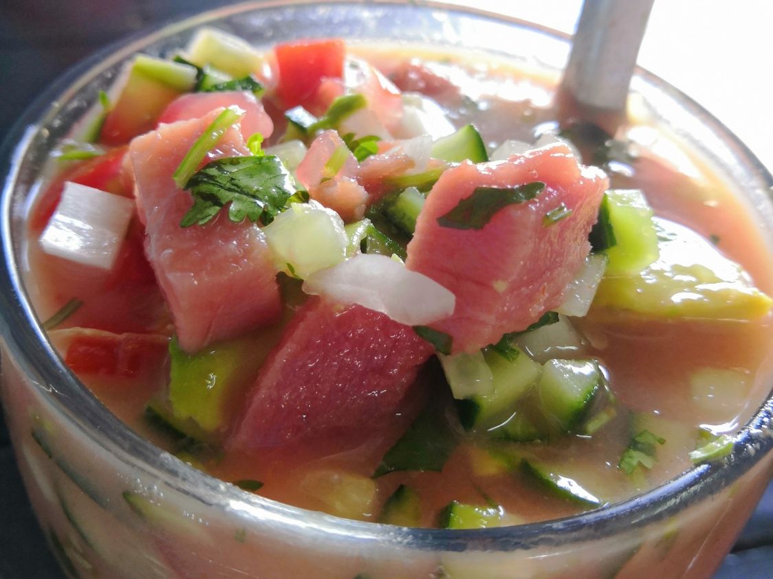 Dejate sorprender con nuestro coctel frío elaborado con atún curtido en limón, clamato casero, caldo de camarón y verdura.