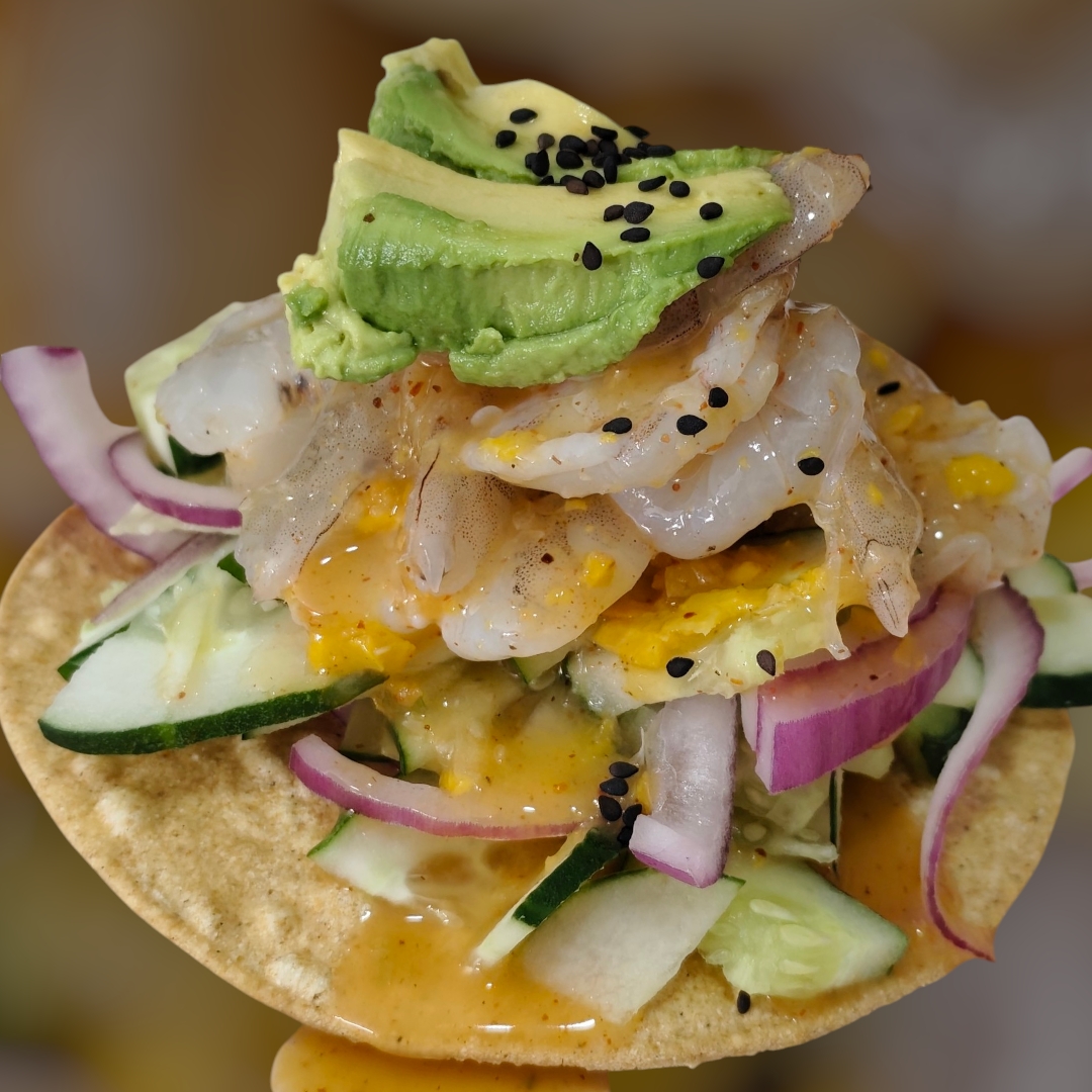 Tostada de Ceviche de Camarón Seco