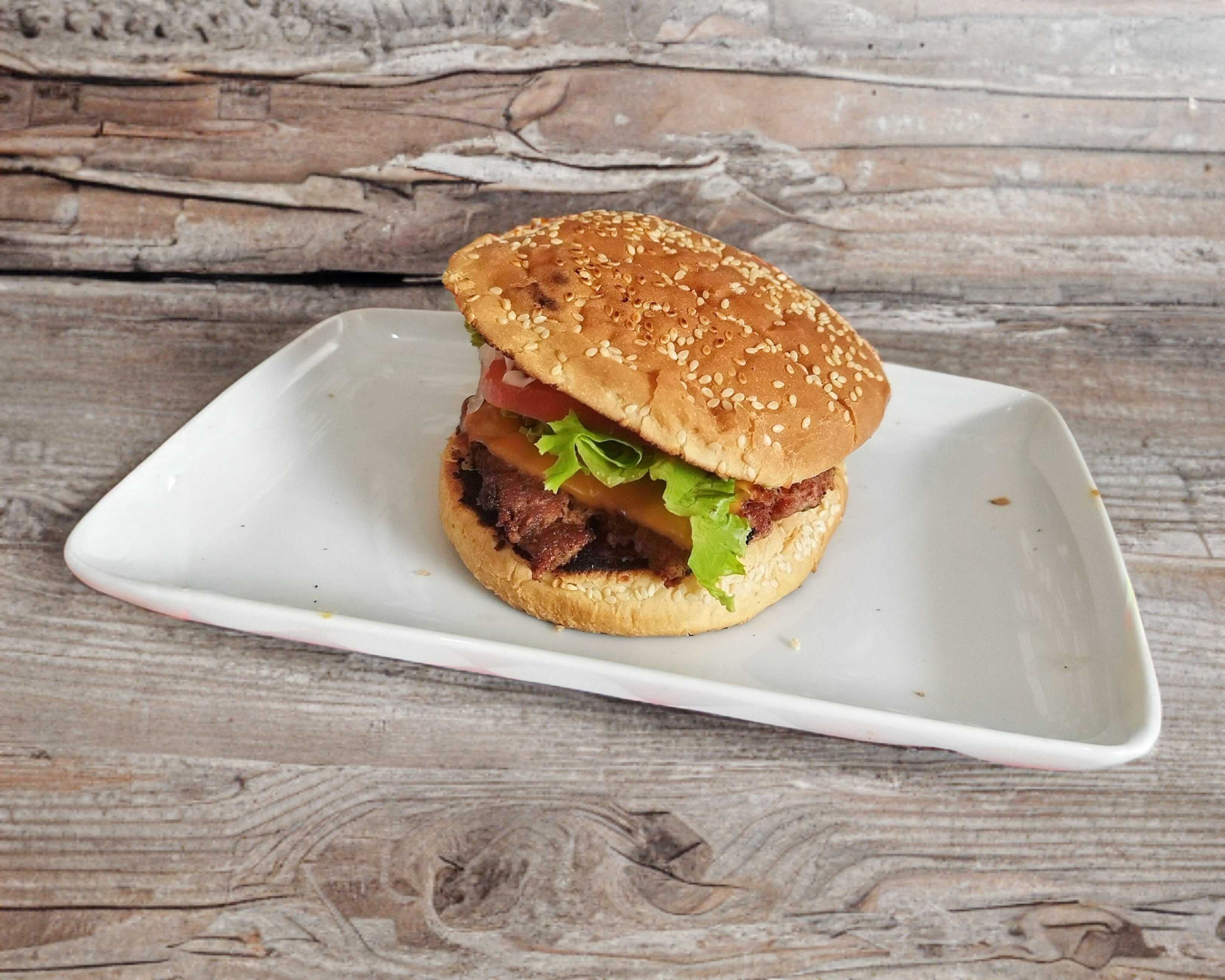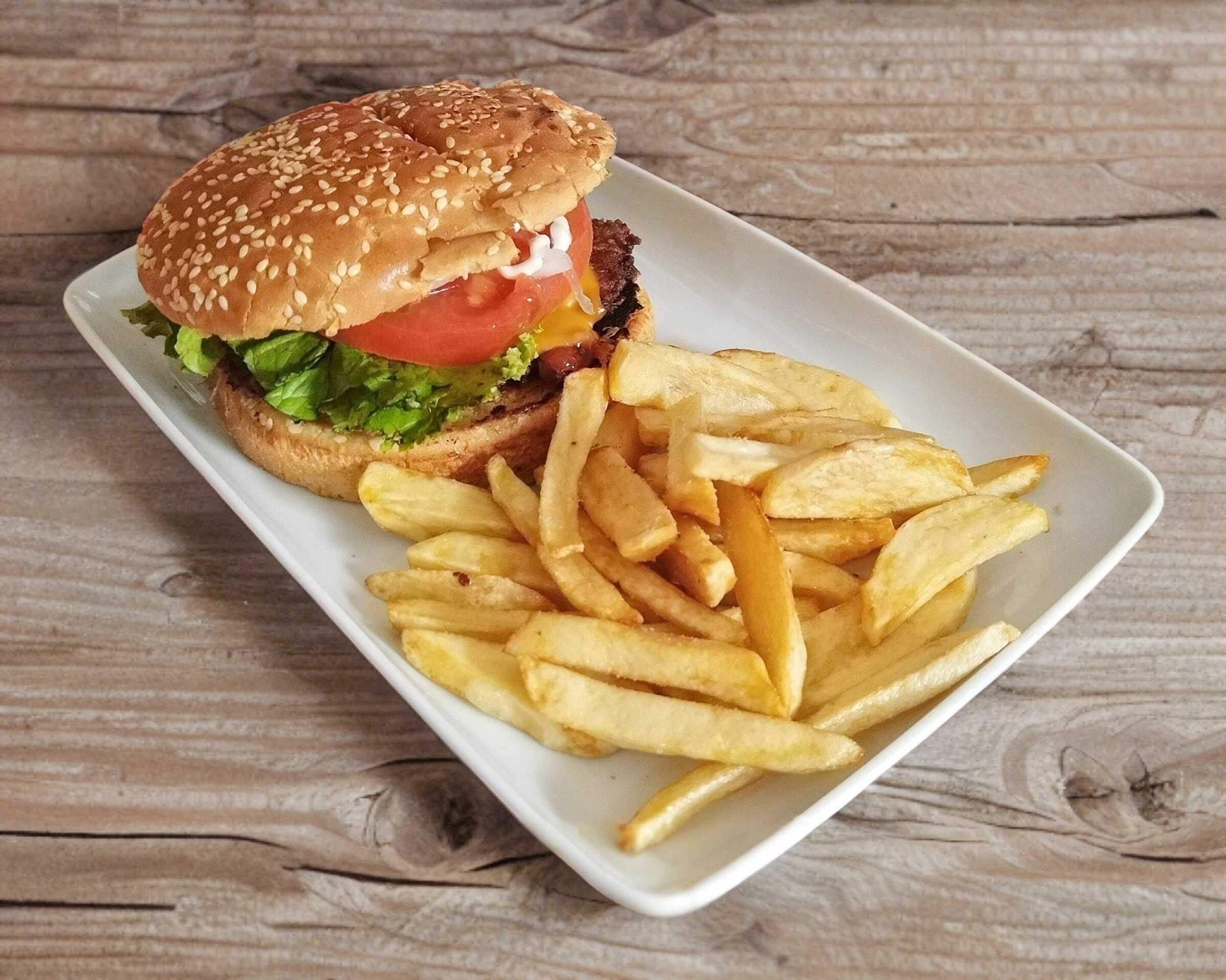 Pan,100grm de carne de res queso amarillo acompañado de 100grm de papas a la francesa