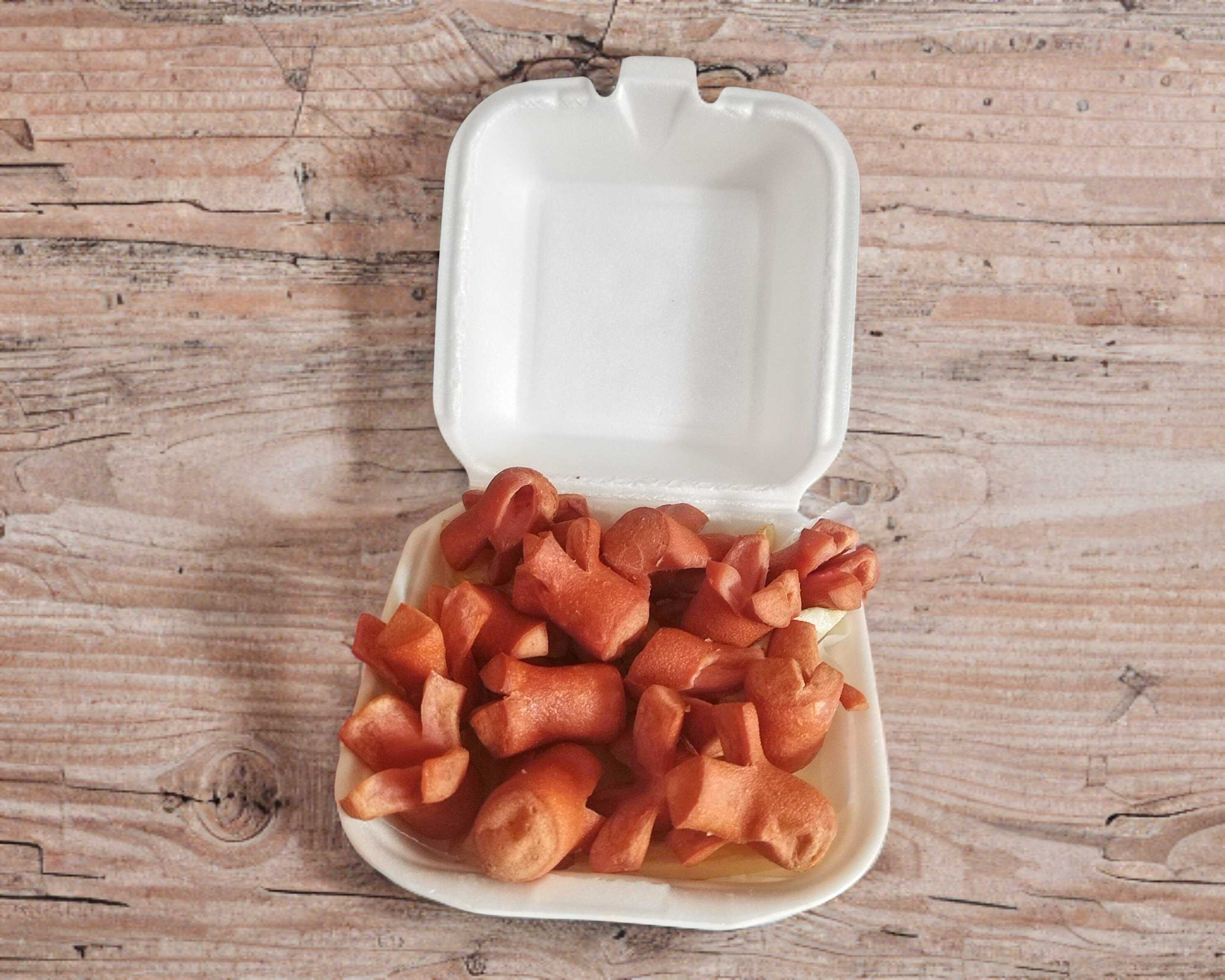 200 gr de salchichas cortadas en forma de pulpo con aderezos.