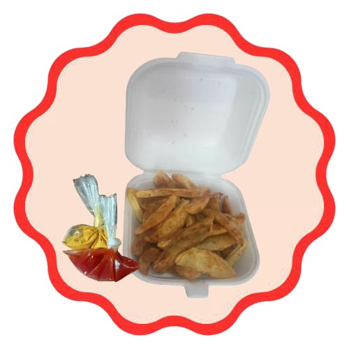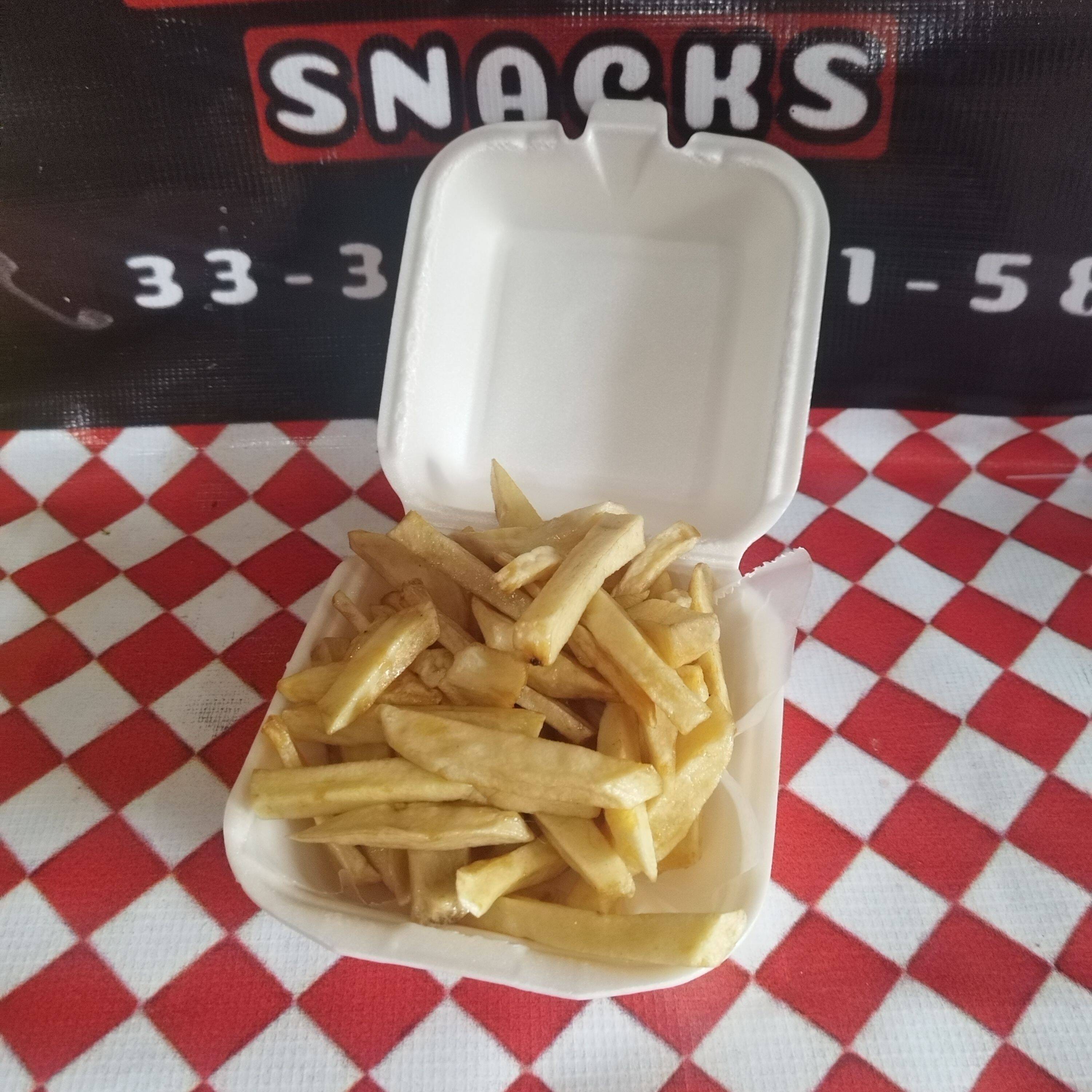 Salchipulpos, salchitacos y papas a la francesa con aderezos, 250 gramos aprox.