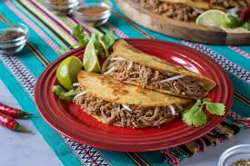 Con tortilla blandita, acompañado de salsa, limones y cebolla.