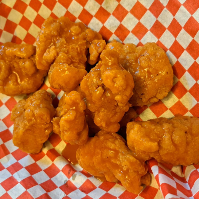 Deliciosos boneless (300grs) bañados con salsa Búfalo acompañados de aderezo ranch