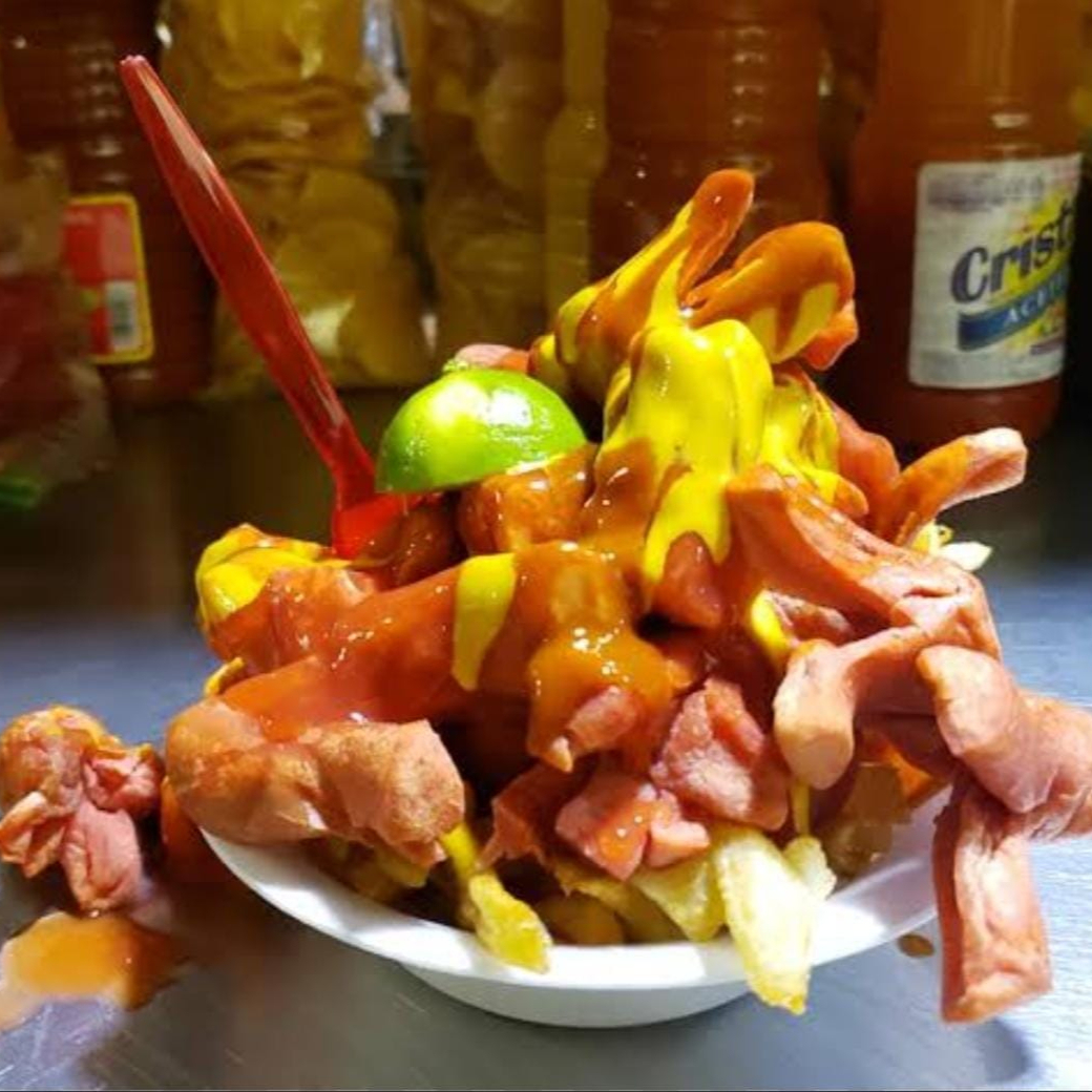 Salchicha, tocino, jitomate cebolla y Jalapeño