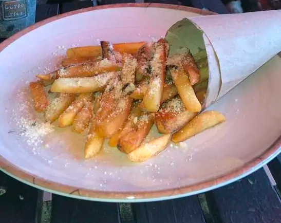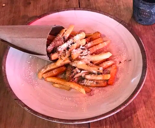 Papas a la francesa sazonadas con sal, pimienta y queso parmesano. Porción de 260 gr.