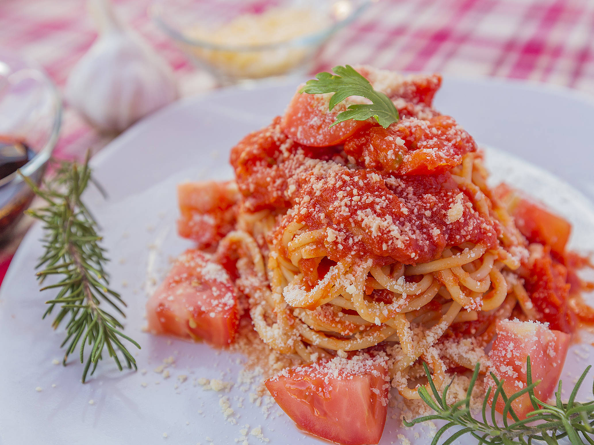 Salsa de tomate, ajo, cebolla y peperoncino piccante.