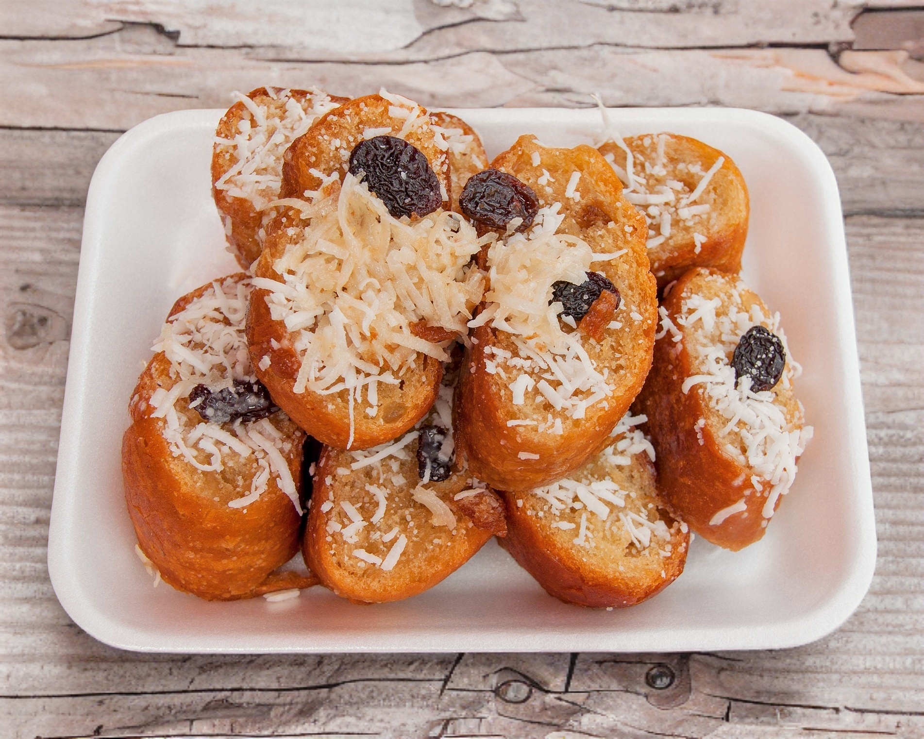 Agua dulce, coco, pasas y lechera