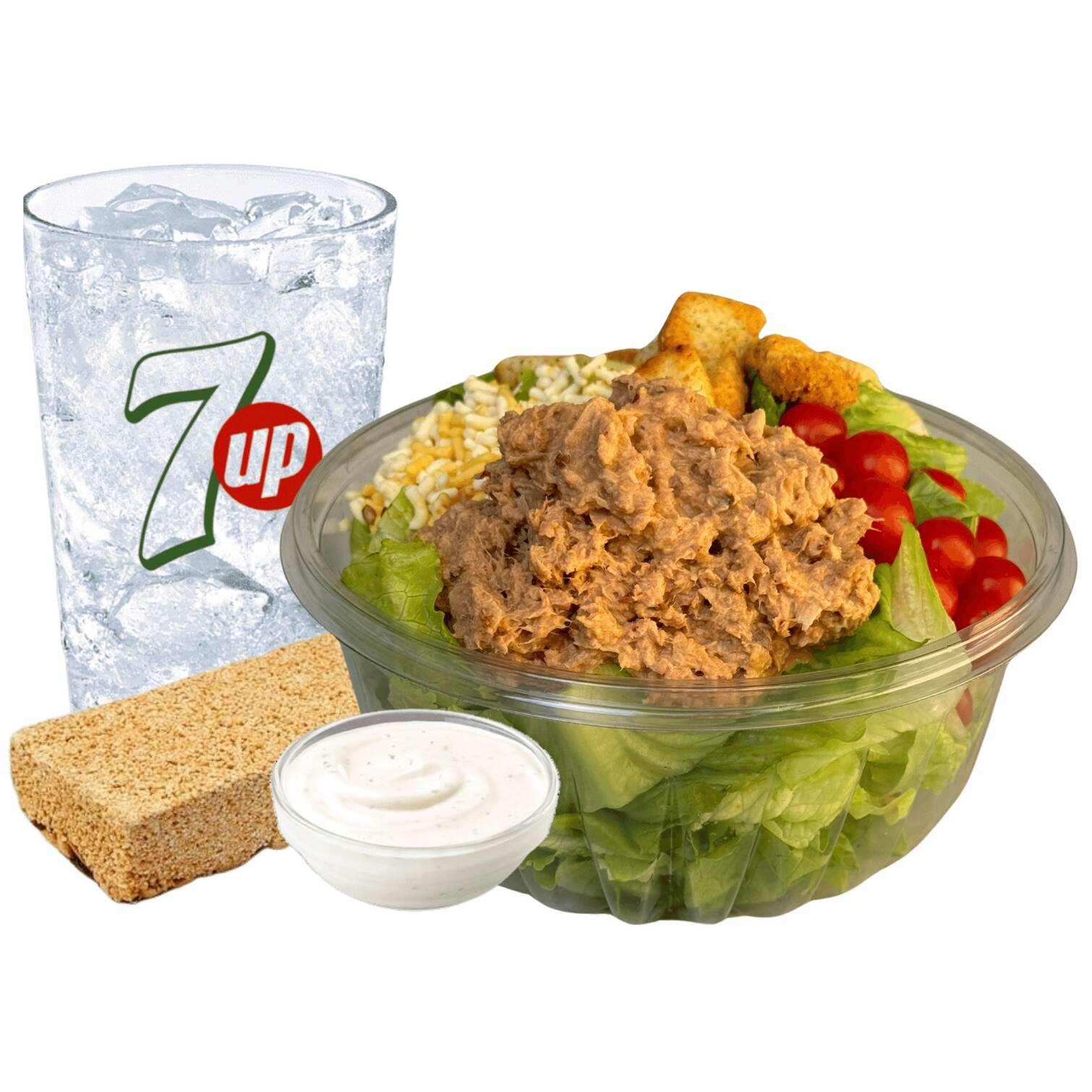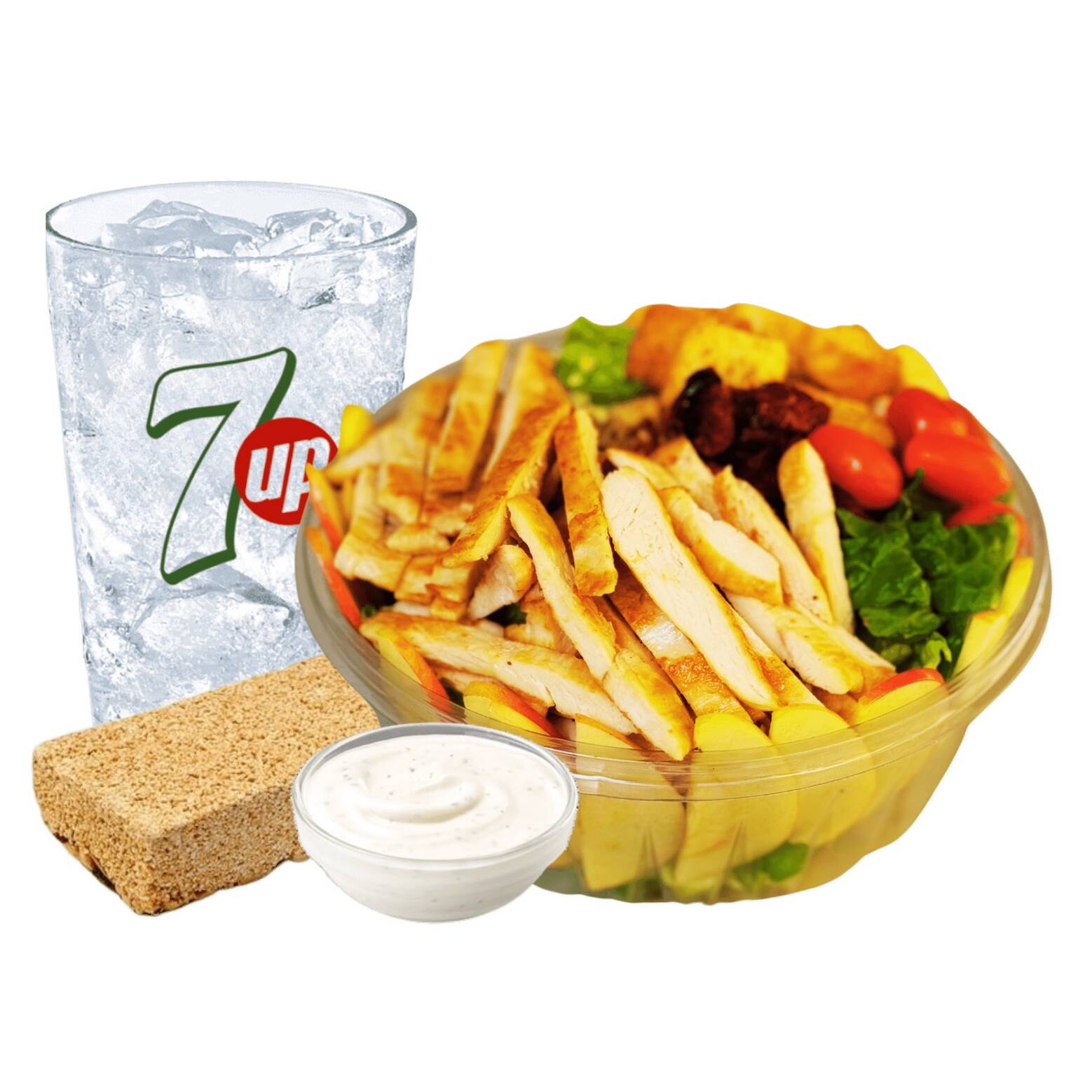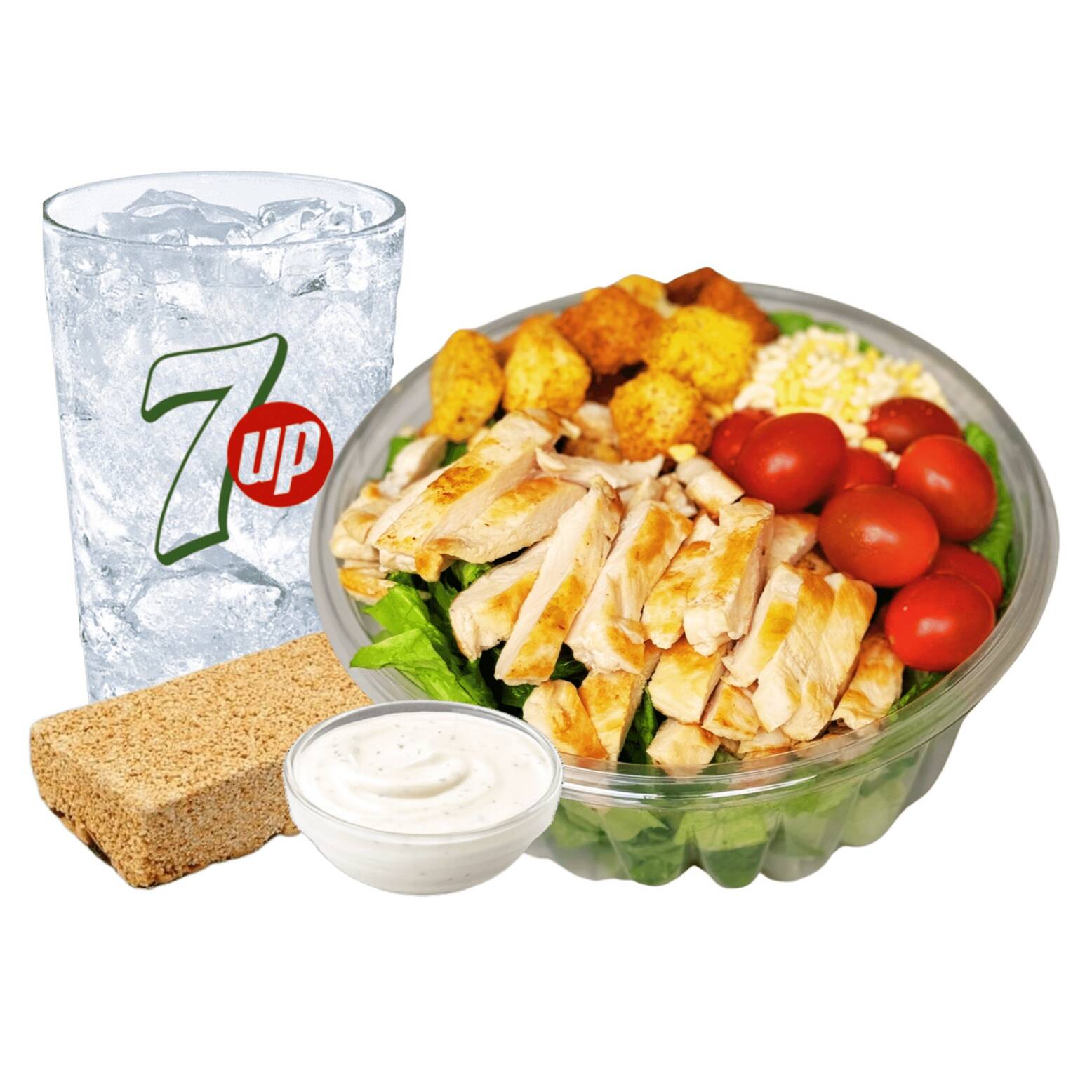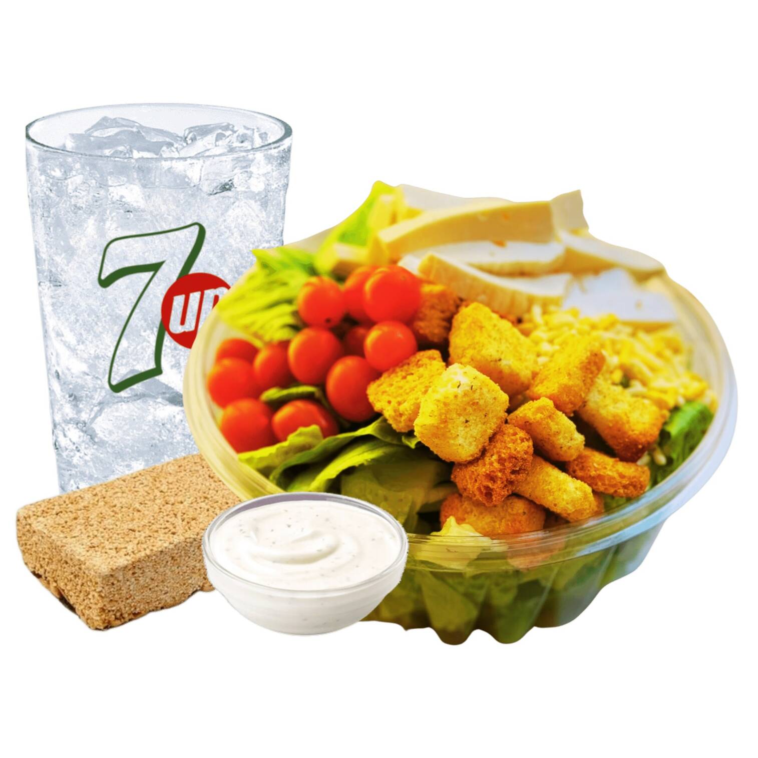Ensalada sin Proteína con Jitomate Cherry, Mix de Lechugas, Mix de Quesos Monterrey y Cheddar, Crotones Sazonados acompañada de Aderezo Ranch 4oz.