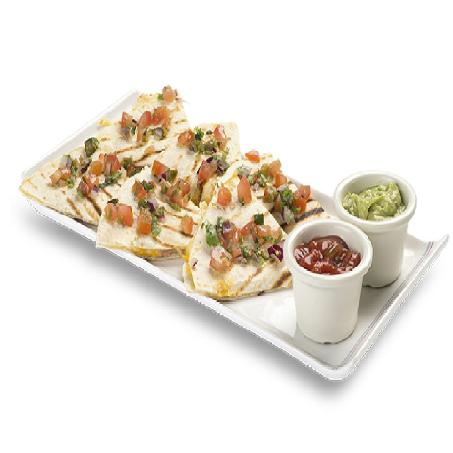 Triángulos de Tortilla de Harina de Trigo con Queso Manchego acompañados con Salsa Mexicana 4oz, Aderezo.