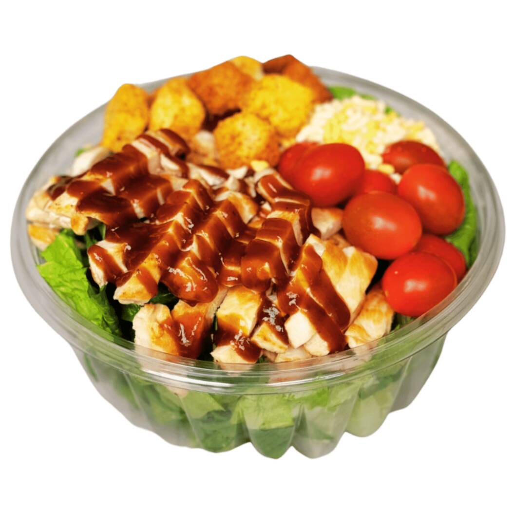 Ensalada de Pechuga de Pollo BBQ con Jitomate Cherry, Mix de Lechugas, Mix de Quesos Monterrey y Cheddar, Crotones Sazonados y Aderezo Ranch 4oz.