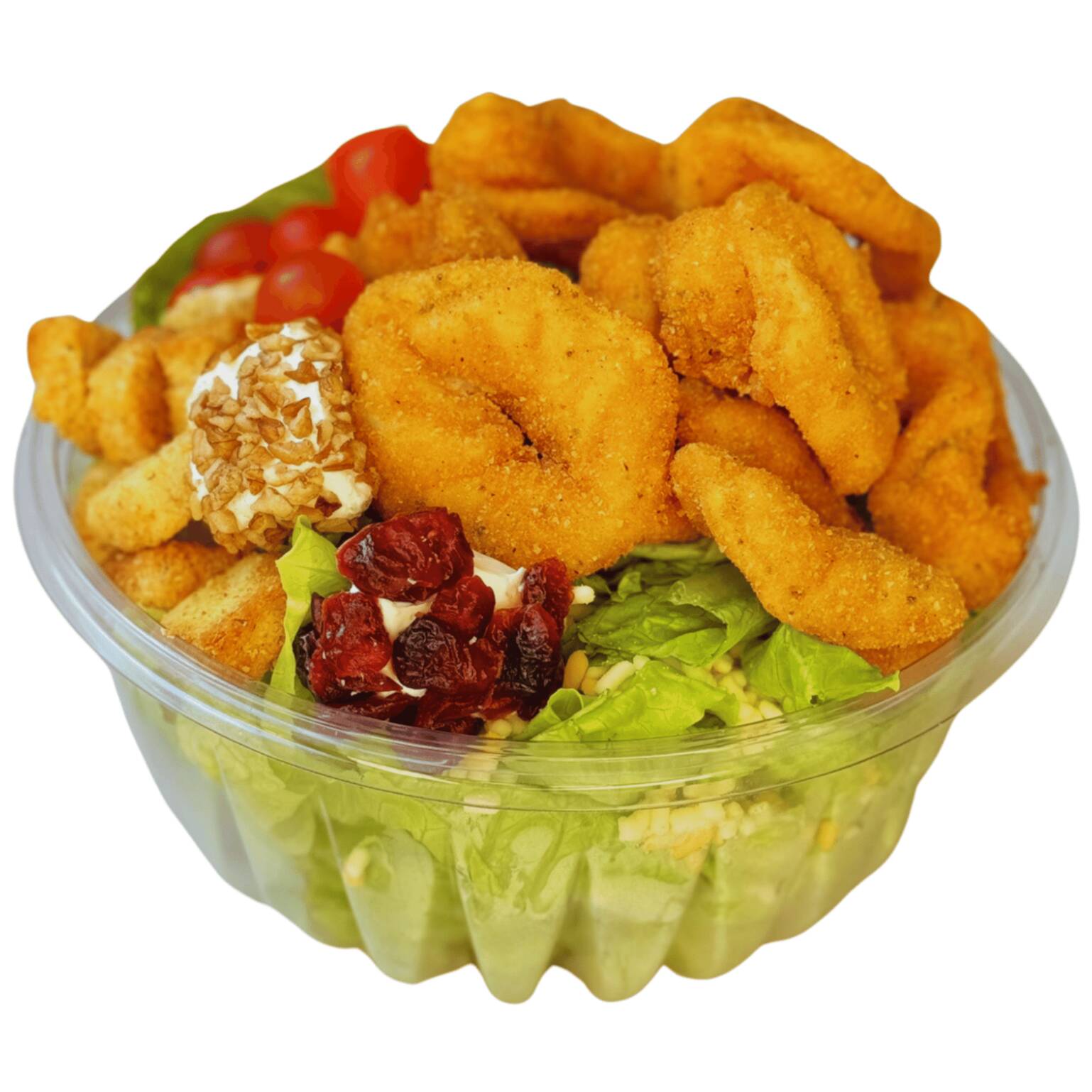 Ensalada de Camarones Crispy con Queso Philadelphia, Mix de Lechugas, Mix de Quesos Monterrey y Cheddar, Crotones Sazonados y Aderezo Ranch 4oz.