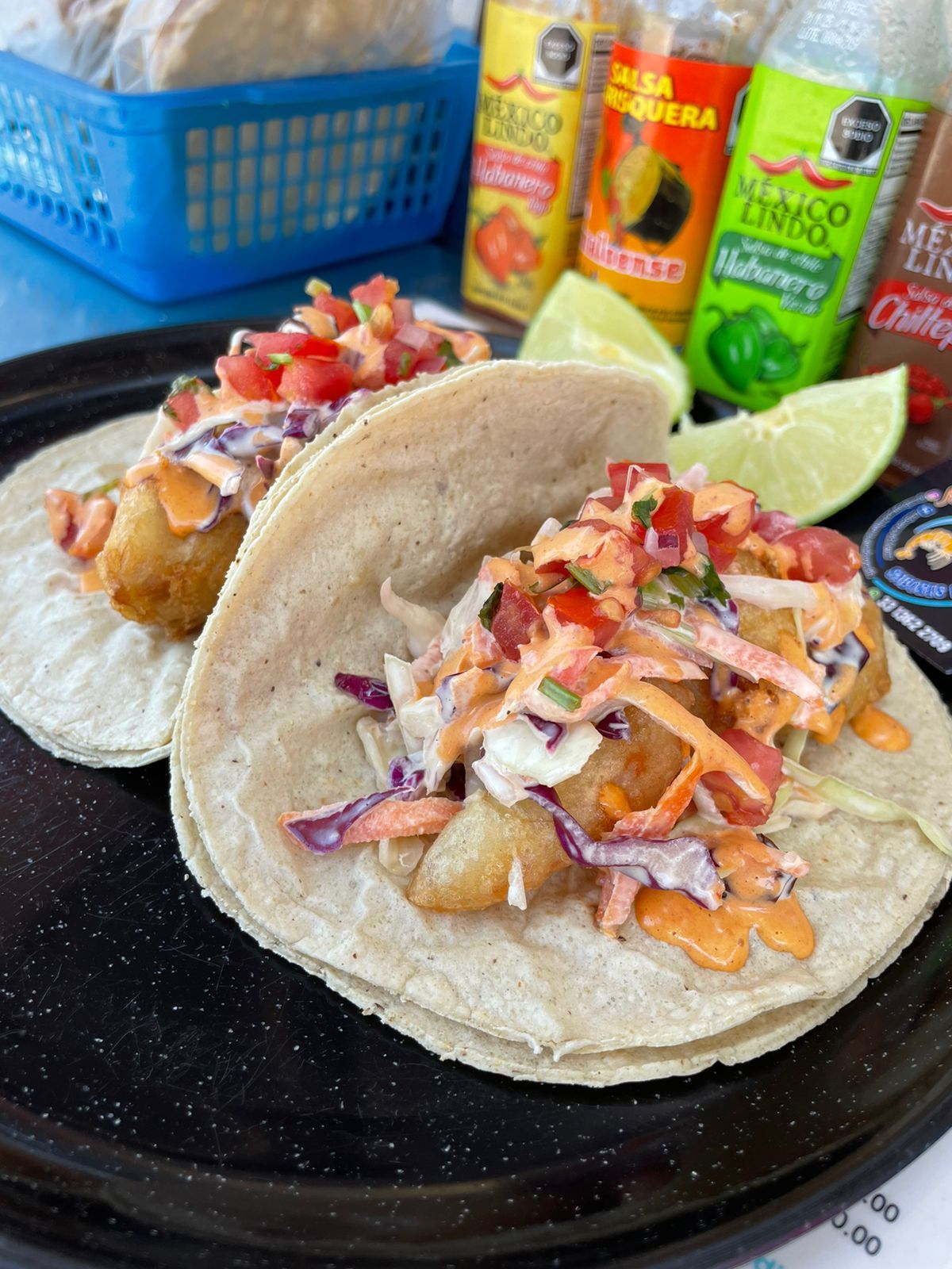 3 Tacos Camarón Capeado +Agua Fresca1Lt