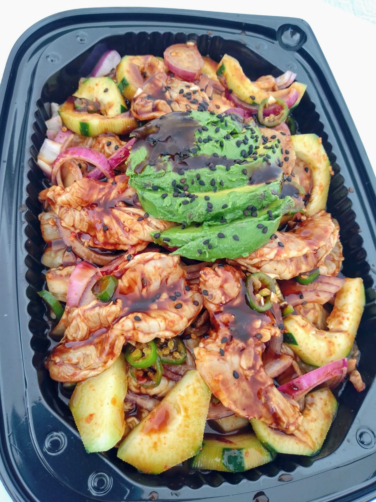 Salseada pero con un toque de nuestra salsa macha, cebolla, pepino y aguacate.