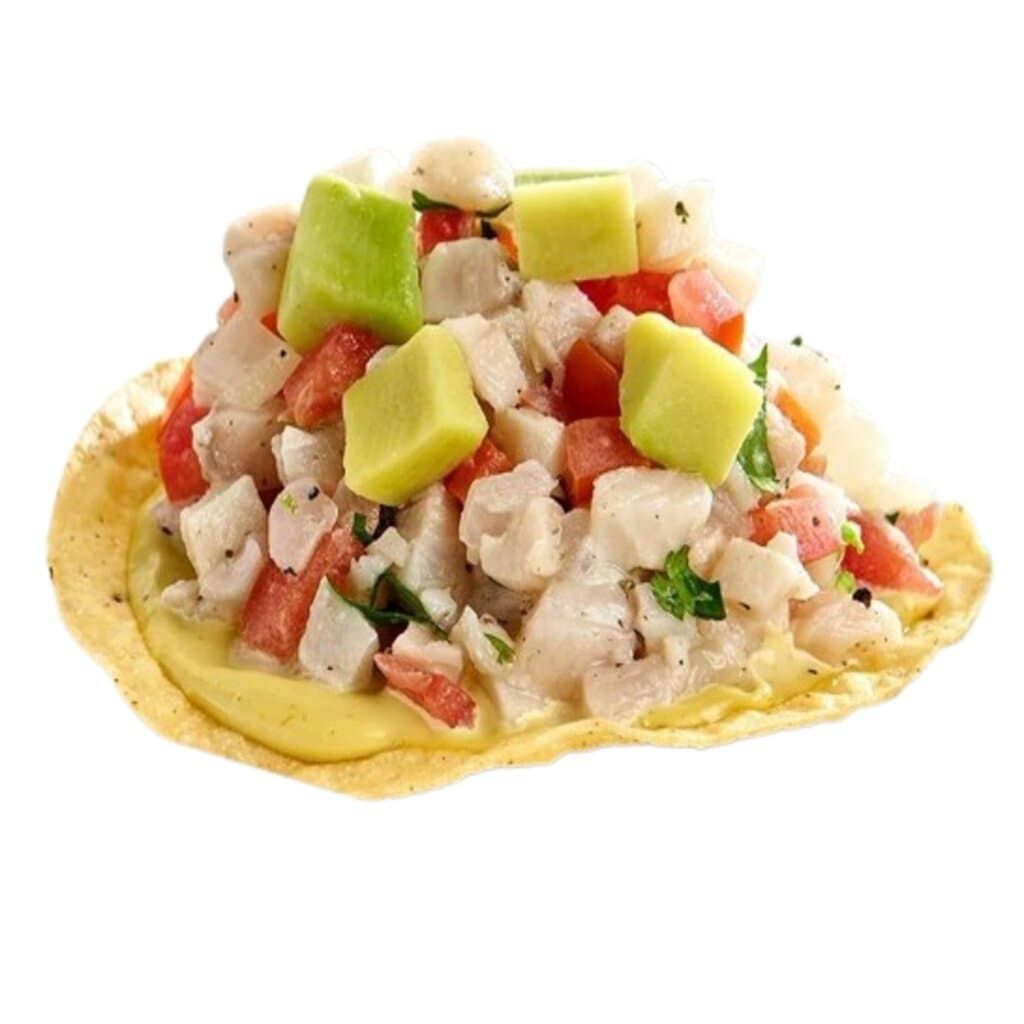 Pescado tilapia en trozo, pico de gallo marinado en salsas de la casa y coronado de aguacate.