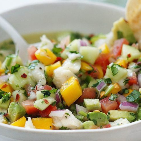 Hazlo tropical con coco natural o mango.Todos nuestros ceviches llevan cebolla, pepino, jitomate y aguacate dandole un toque con sus rica salsa de la casa.
