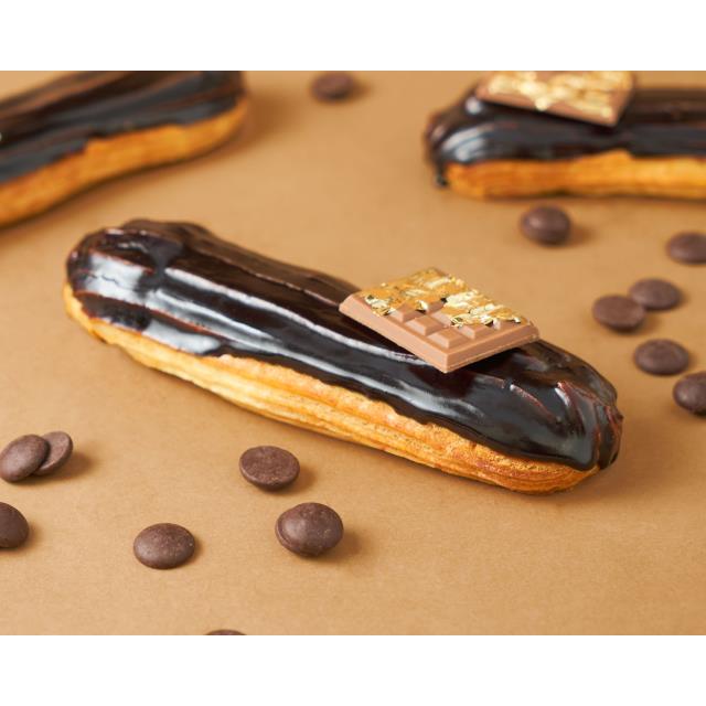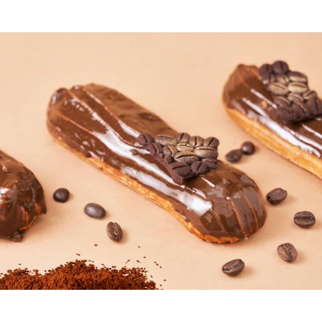 Masa choux casera con relleno de crema pastelera de café, cubierto con un glaseado.