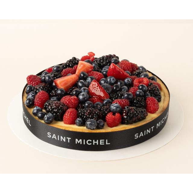 Base de masa azucarada crujiente, relleno con un mousseline de vainilla y montado con unos frutos rojos frescos.
