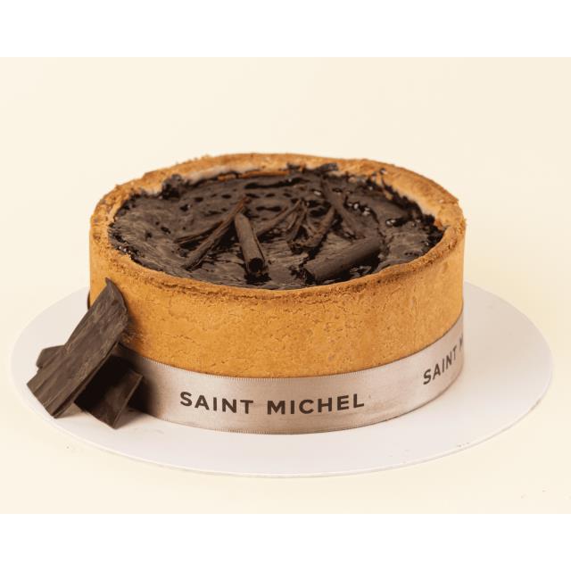 Tarta con base de galleta de chocolate, con relleno de ganache de caramelo salado y cremoso de chocolate, con un baño de crema de avellana.