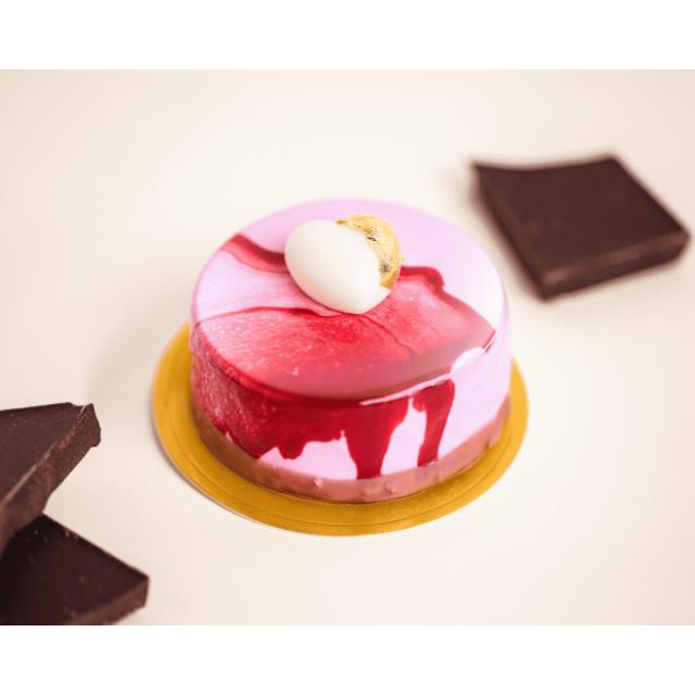 Base de masa azucarada crujiente, relleno con un mousseline de vainilla y montado con unos frutos rojos.