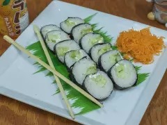 Alga por fuera y Relleno de philadelphia, pepino, aguacate y proteina a elegir.
