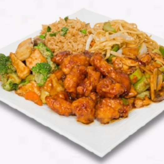 Delicioso Pollo Capeado bañado en salsa Agridulce acompañado de Arroz frito y Chow Mein (fideos planos con verduras salteadas). Ideal de 1 a 2 personas