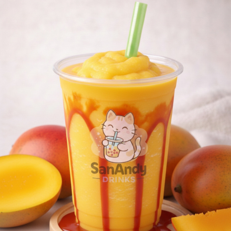 Clásica mangonada frappé con chamoy y chilito, refrescante y llena de sabor.