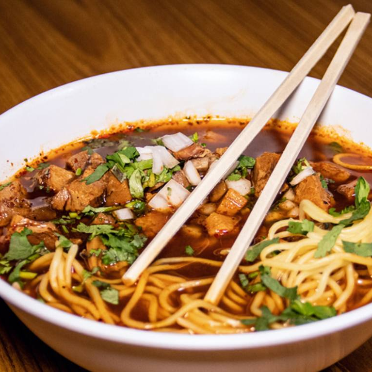 delicioso ramen con barbacoa, verdurita, totopos y picante aparte