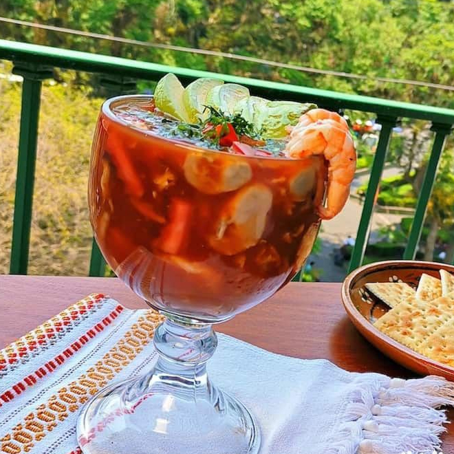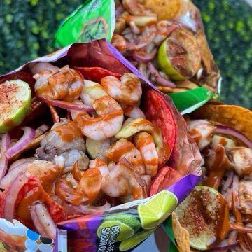Lo mas fresco del mar para tu paladar, delicioso preparado de mariscos camarón, pescado, pulpo en un rico caldito de camarón bañado con salcitas picositas aguacate cremoso, pepino, jitomate, cebolla morada y cilantro fresco