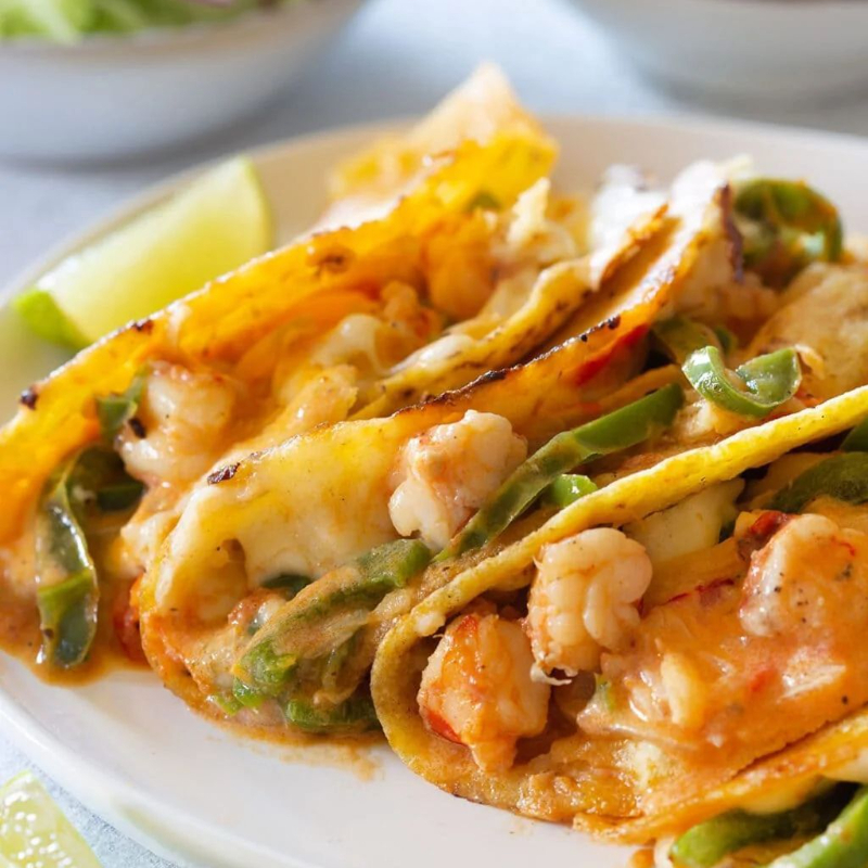 Deliciosos taco gobernador doradito preparados con un guisado especial de la casa.