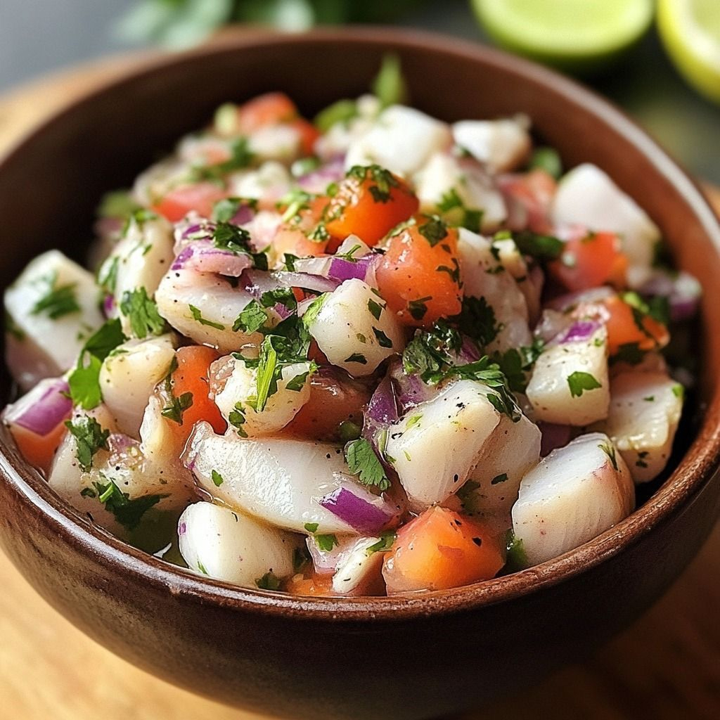 Deliciosa orden de ceviche de pescado estilo Sinaloa curtido con jugoso limón y un toque de jugo de almeja.