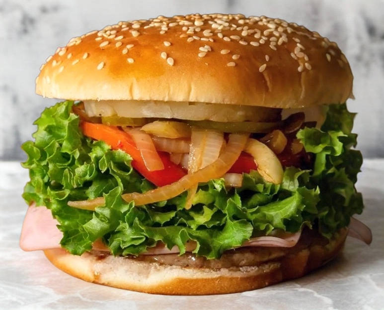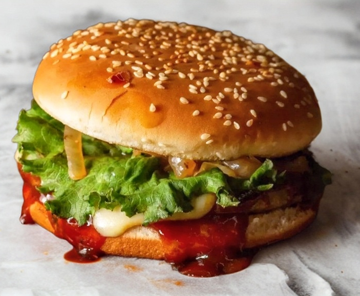 Deliciosa hamburguesa de res artesanal (100 g) en salsa BBQ. Acompañada de cebolla asada queso cheddar y queso amarillo. Prepárala a tu gusto