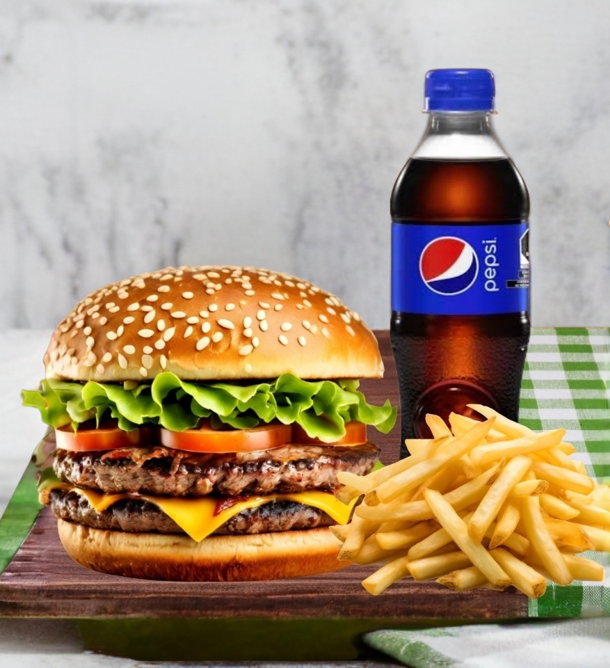Hamburguesa Doble*1 + Papas a la francesa*1 + Refresco familia Pepsi 355ml*1