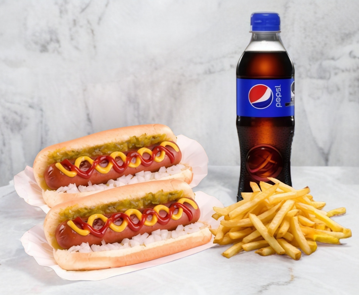 Hot Dog Clásico Viena*2 + Papas a la francesa*1 + Refresco familia Pepsi 355ml*1