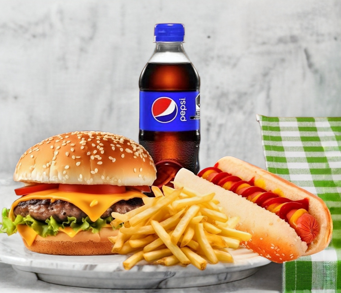Hamburguesa Sencilla*1 + Hot Dog Clásico Viena*1 + Papas a la francesa*1 + Refresco familia Pepsi 355ml*1