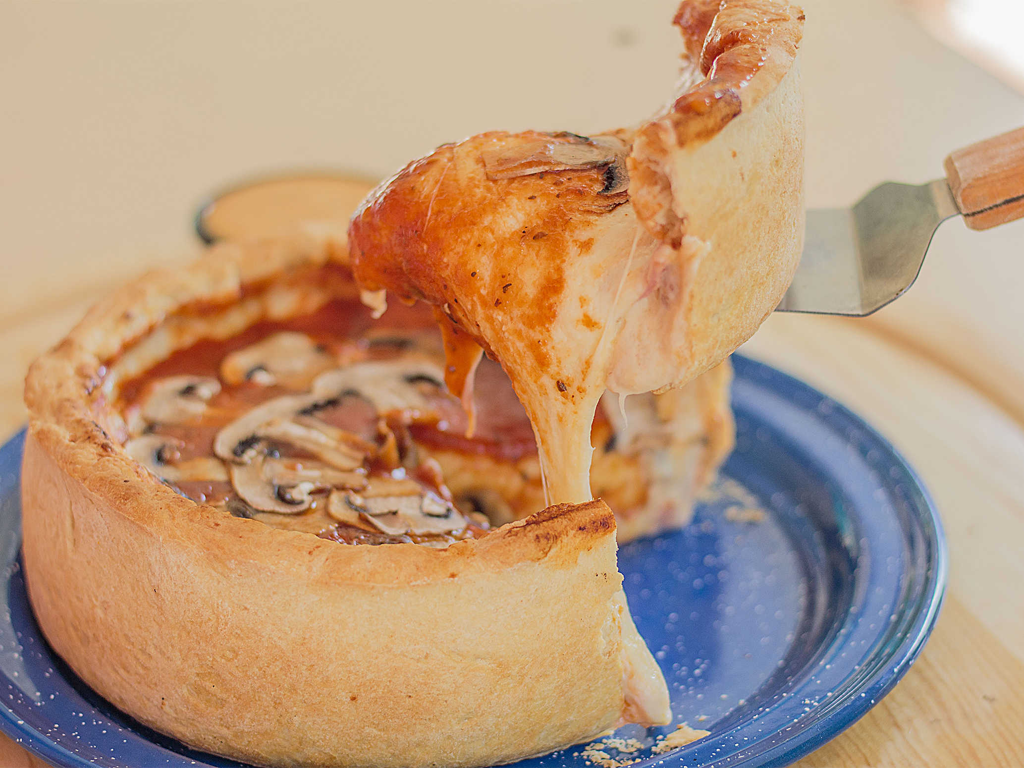 Dos capas de ingredientes,salami y jamon 3 capas de queso y coronada con champiñones, esta super deliciosa...